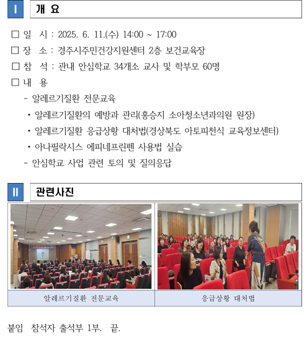 [] 6월 11일 안심학교 교사 및 학부모 대상 알레르기질환 전문교육 실시